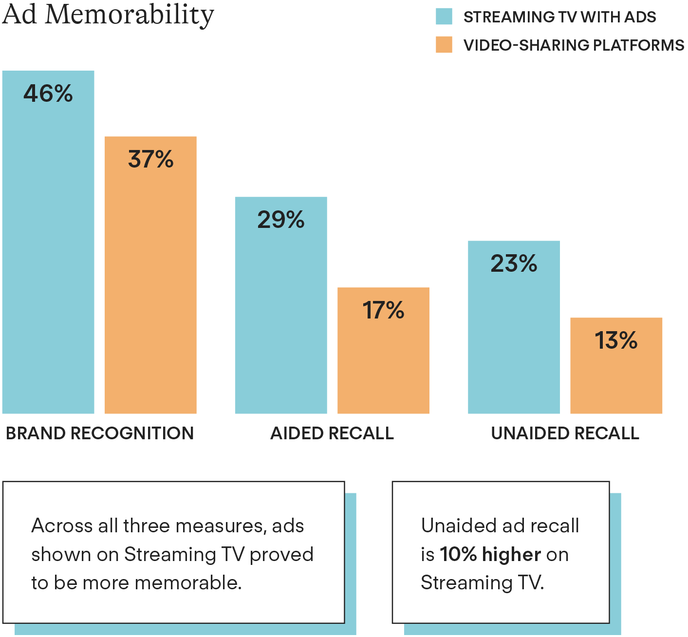 Streaming TV delivers stronger ad recall than Video-Sharing Platforms.